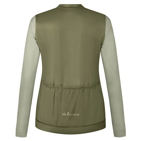 Maillot Veloine Bernardino Eco à manches longues de couleur verte. Référence constructeur Veloine : LSJ-BERNARDINOECO-OLIVE